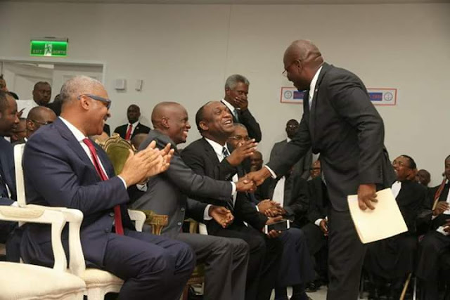 Port-au-Prince, October 2, 2017.- The President of the Republic, His Excellency Jovenel Moïse, accompanied by the Prime Minister, Jack Guy Lafontant, attended the opening of the judicial year 2017-18. The ceremony was presided over by Mr. Jules Cantave, President of the Court of Cassation, in the presence of several members of the cabinet, including the Minister of Justice and Public Security, Mr. Heidi Fortuné, Interior and Local Government, Dr. Max Rudolph St Albin, and Minister of Planning and External Cooperation, Mr. Aviol Fleurant.